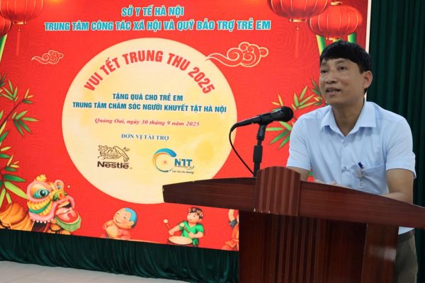 Ông Phùng Công Lợi – Giám đốc Trung tâm Chăm sóc người khuyết tật Hà Nội bày tỏ sự trân trọng trước tấm lòng của Trung tâm Công tác xã hội và Quỹ Bảo trợ trẻ em Hà Nội, sự sẻ chia của các nhà hảo tâm, đồng thời khẳng định những món quà này sẽ góp phần nâng cao chất lượng chăm sóc, giúp các em nhỏ có một mùa Trung Thu ý nghĩa và trọn vẹn hơn.